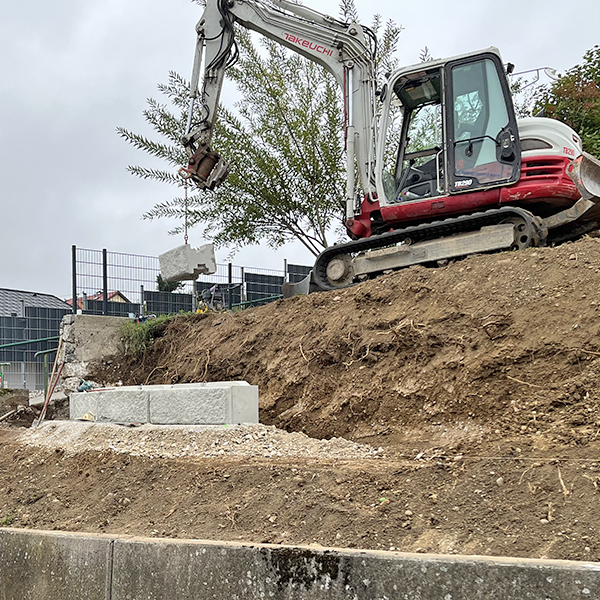 Mit dem SW-Stützwandsystem wurde die Böschung eines Einfamilienhauses in Sierning als abgestufte Stützmauer ausgeführt, wodurch eine Vergrößerung der ebenen Gartenfläche realisiert werden konnte.