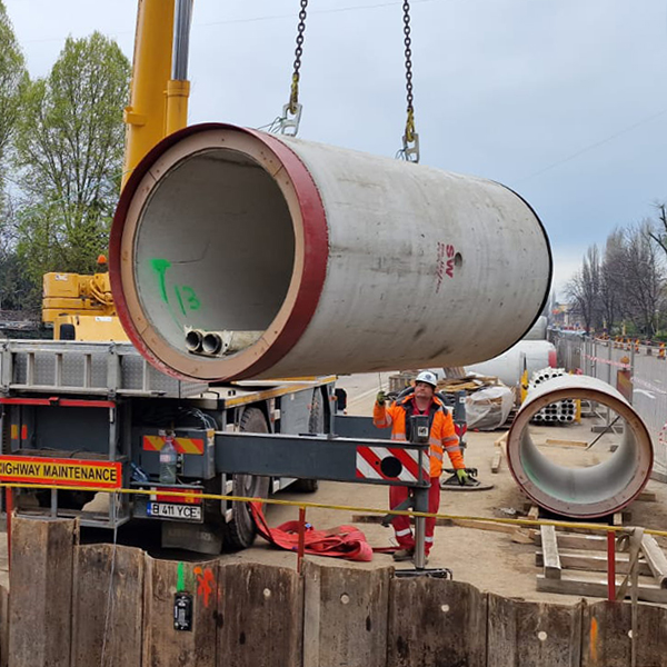 Microtunelarea sau Pipe Jacking este o tehnologie larg răspândită de instalare a conductelor edilitare, fără săpătură deschisă, ce oferă noi oportunități pentru extinderea infrastructurii subterane în zonele urbane, în care metodele convenționale sunt mai puțin rentabile sau imposibil de aplicat. Această tehnologie este extrem de precisă şi poate fi utilizată în toate condițiile de sol. SW Umwelttechnik a livrat tuburile de subtraversare din beton armat DN 1200 mm necesare realizării colectorului de canalizare din Bdul Aurel Vlaicu în Constanța.
