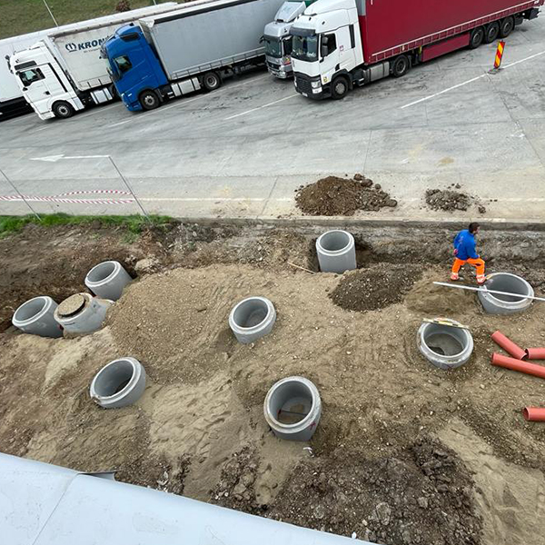 În cadrul proiectului ‘’Construire stație mixtă de distribuție carburanți Rompetrol pe raza comunei Giarmata, pe autostradă două stații pe ambele sensuri”, SW Umwelttechnik România a produs și livrat cămine de vizitare DN 800 mm carosabile având in componență radiere, inele de supraînălțare, elemente tronconice de reducție, inele de aducere la cotă, guri de scurgere de la Orțișoara și plăci de acoperire atipice de la Izvoru.